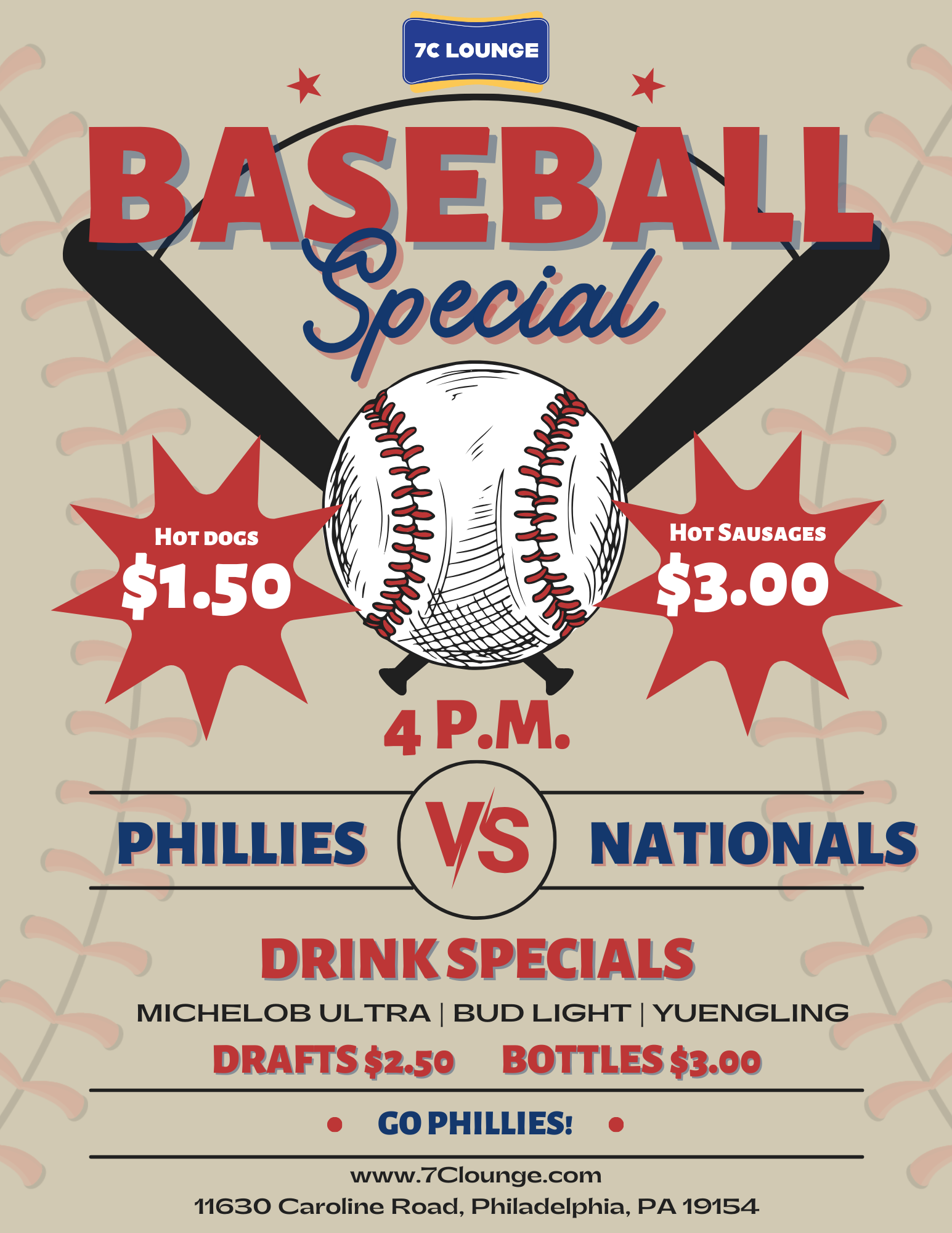 Come watch the Phillies take on the Washington Nationals for the season opener at 7C Lounge. Game starts at 4 p.m.