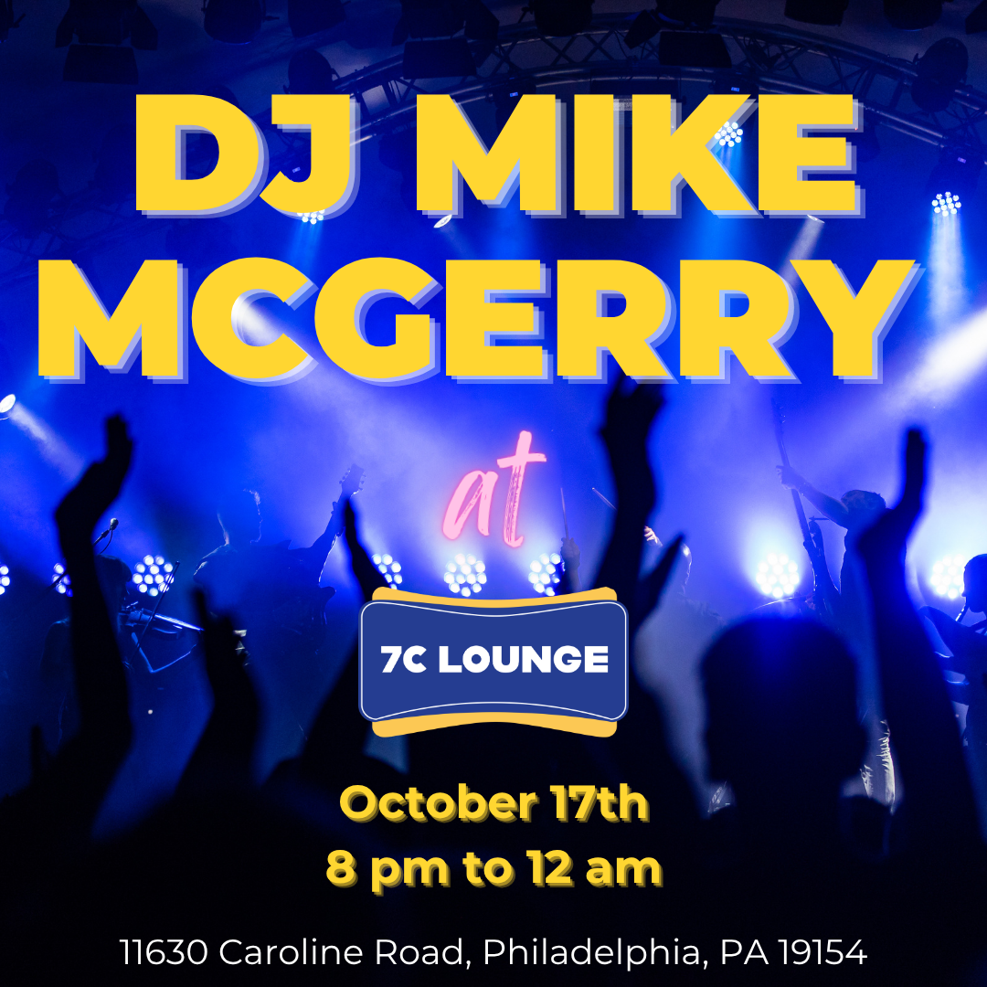 Catch DJ Mike McGerry at 7C Lounge on Friday, October 17 from 8 PM to 12 AM. Great music, full bar, good vibes—grab your crew and a table early.📍 11630 Caroline Road, Philadelphia, PA 19154