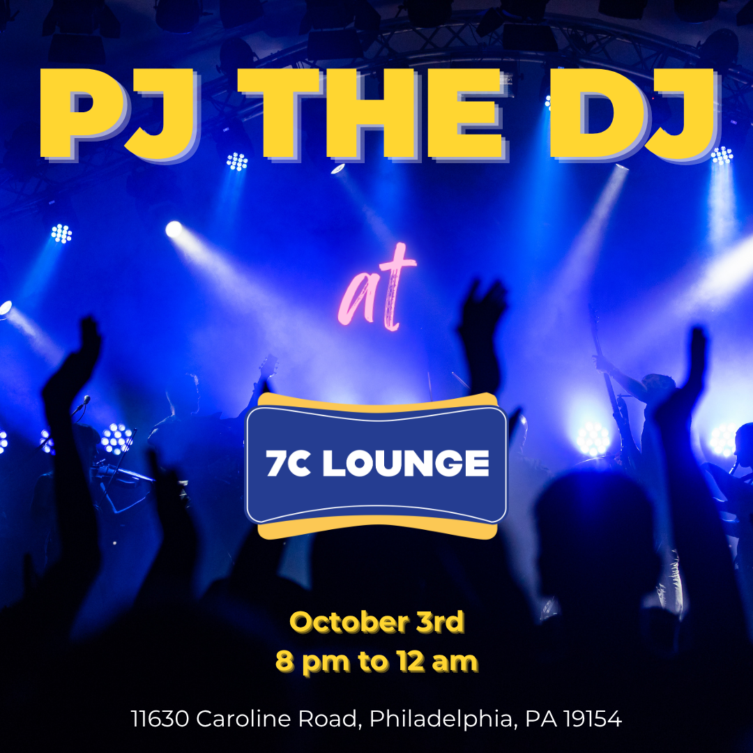 Join us at 7C Lounge for a high-energy set from PJ the DJ, spinning from 8:00 PM to 12:00 AM. Expect great music, a full bar, and a lively crowd—perfect for a weeknight out with friends. Location: 11630 Caroline Road, Philadelphia, PA 19154.