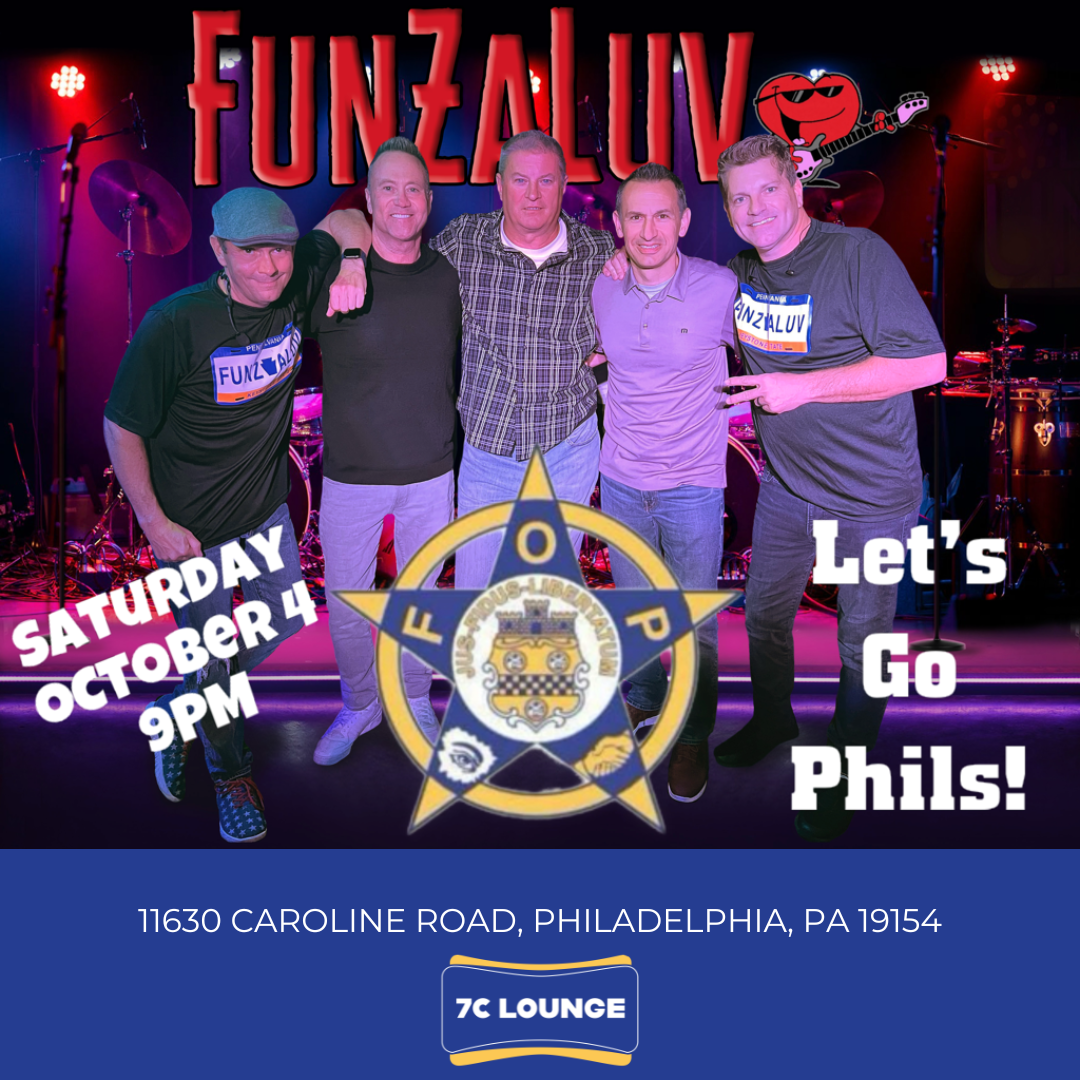 Join us at 7C Lounge for FunZaLuv live on Saturday, October 4, kicking off at 9:00 PM. Expect a high-energy set, great atmosphere, and full bar service all night. Location: 11630 Caroline Road, Philadelphia, PA 19154. Arrive early with your group and make it a Saturday night out.